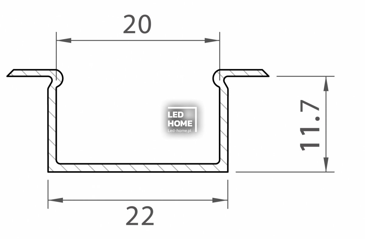 Profil wpuszczany szeroki jest profilem wpustowym mocno doświetlającym, przeznaczonym do wpuszczenia w kanał na grubość płyty gipsowej. Może zostać wbudowany w dowolną powierzchnię (karton-gips, płyty drewniane, płyty kamienne, ściany, sufity, itp.), a estetyczne „skrzydełka” kompletnie zasłonią krawędzie kanału. Wykonany z wysokiej jakości anodowanego aluminium, może pomieścić dwie standardowe taśmy LED o szerokości 8 lub 10 mm. Będąc stylową obudową dla samych taśm LED, pełni również funkcję ich radiatora, dbając o dobre oddawanie ciepła.